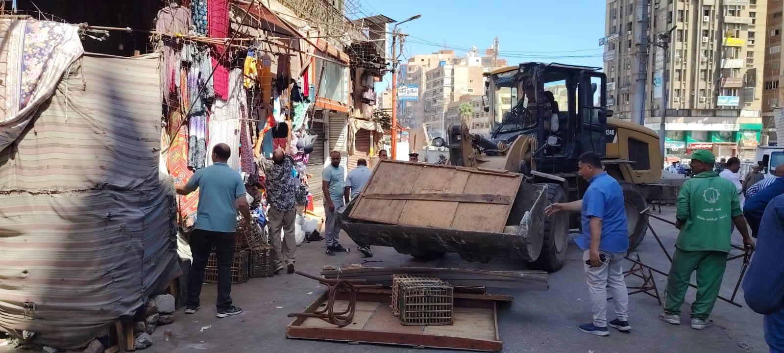قامت اليوم حملة مكبرة شملت النظافة ورفع الاشغالات بمنطقة الخان وشارع البورصه وخلف مسجد السيد البدوى