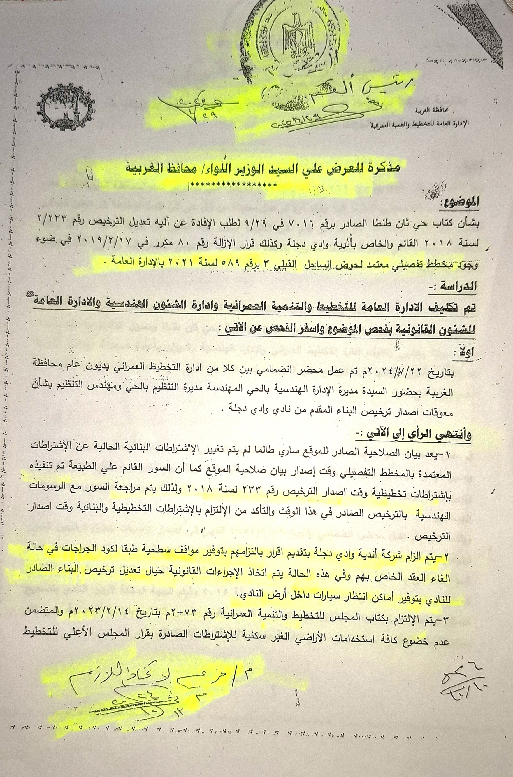 ولكن اداره التخطيط العمراني بالديوان العام والاداره الهندسيه بحي ثاني طنطا عندما اصدروا رخصه وادي دجله بطنطا بتاريخ 31/10/2024 ارتكبوا العديد من المخالفات والتضليل للراي العام .