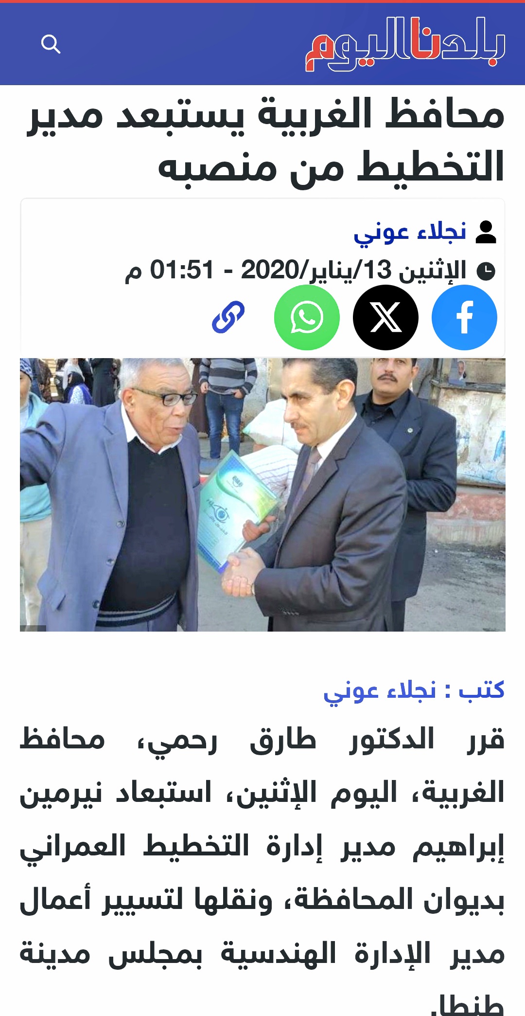 نرجو النظر بكل موضوعيه وبكل اهتمام لهذا التحقيق الصحفي المهم وما به من مستندات دامغه وقاتله وفقكم الله معالي اللواء اشرف الجندي محافظ الغربيه وجميع قيادات المحافظه الموقرين لما فيه خير البلاد والعباد وحفظ الله مصر