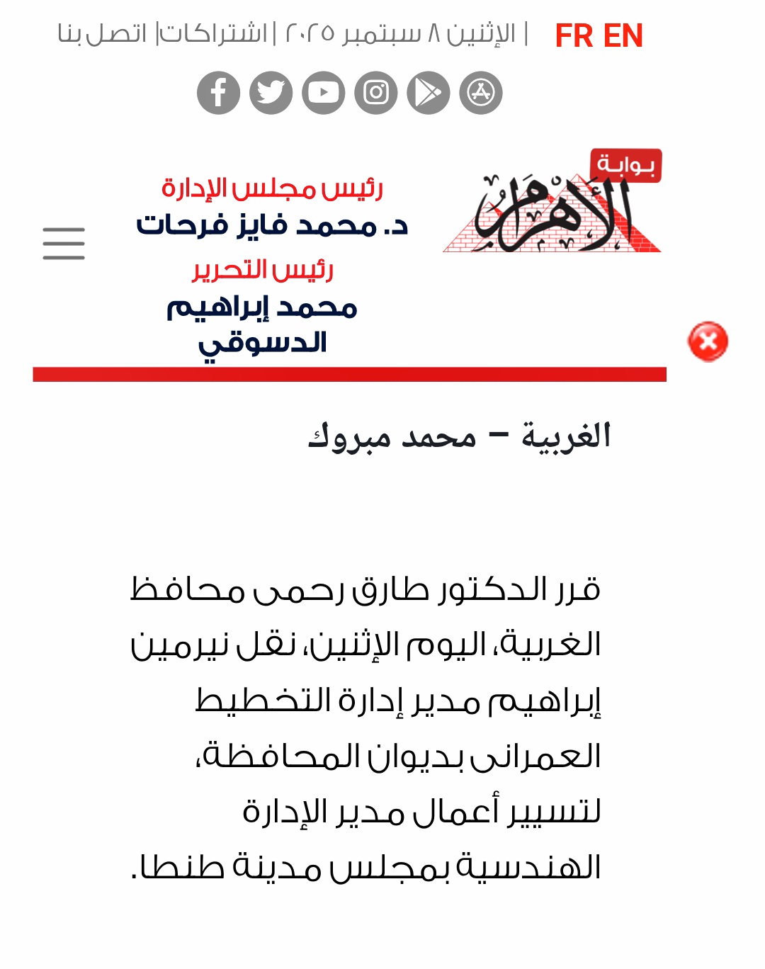 الى معالي اللواء اشرف الجندي محافظ الغربيه والاجهزه الرقابيه.                سنعرض لسيادتكم